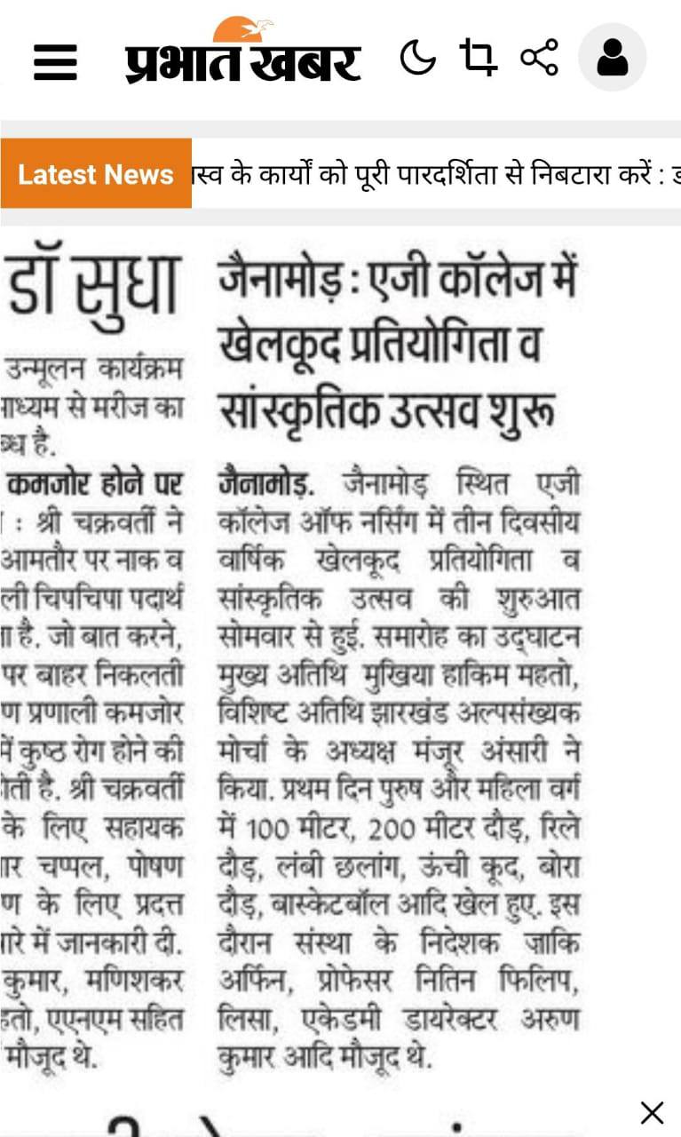 As a part of this initiative A.G. College of Nursing is being governed by Abdul Gafur Ansari Educational Trust (A.G.A.E.T) engaged in managing the educational standards.