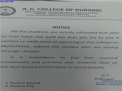 The result of the entrance examination held on 25th July 2022 for B.Sc. Nursing & 17th August 2022 for G.N.M. Course will be declared on the following dates.